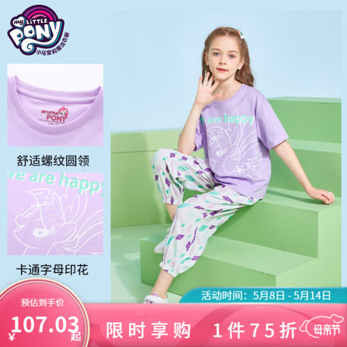 当前的位置: 首页 > 今日值得买 > 小马宝莉(MY LITTLE PONY)儿童夏季套装2023新款时尚小女孩T恤防蚊裤两件套薄 紫色 140