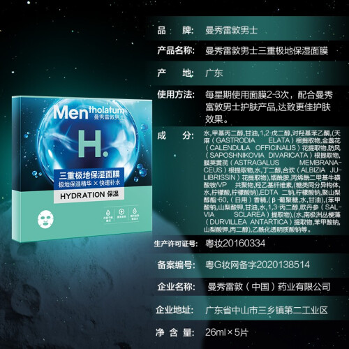 当前的位置: 首页 > 今日值得买 > 曼秀雷敦男士专用补水保湿面膜26ml*5片(提亮肤色 改善暗沉 )