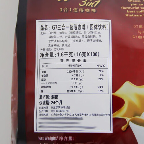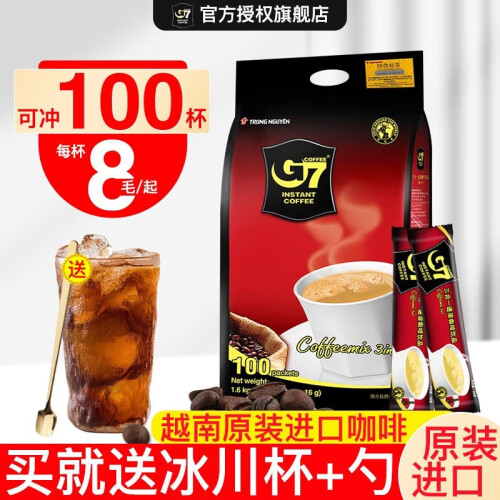 当前的位置: 首页 > 今日值得买 > 中原(TRUNG NGUYEN)g7黑咖啡美式纯咖啡粉30杯防困饮料速溶特浓咖啡粉越南进口 G7原味100条装