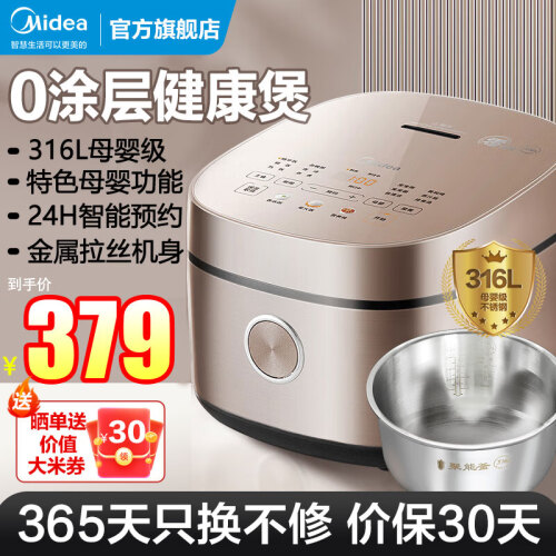 当前的位置: 首页 > 今日值得买 > 美的(Midea)无涂层电饭煲 0涂层电饭锅 家用4升智能预约316L不锈钢内胆电饭煲 特设母婴专属功能 MB-RC436