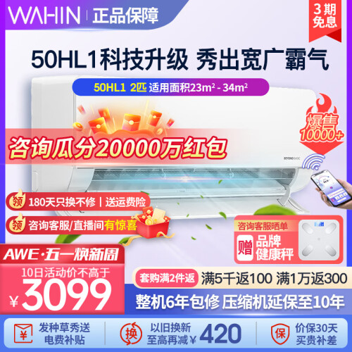 当前的位置: 首页 > 今日值得买 > 华凌空调2匹挂机变频冷暖新能效手机智能遥控智清洁大风量 卧室客厅家用 以旧换新 一套购齐 【2匹】新1级防直吹KFR-50GW/N8HL1