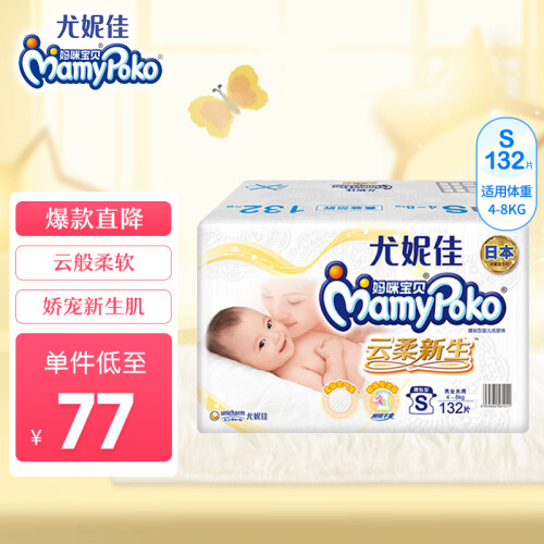 当前的位置: 首页 > 今日值得买 > 妈咪宝贝MamyPoko纸尿裤S132片【4-8kg】云柔新生婴儿尿不湿