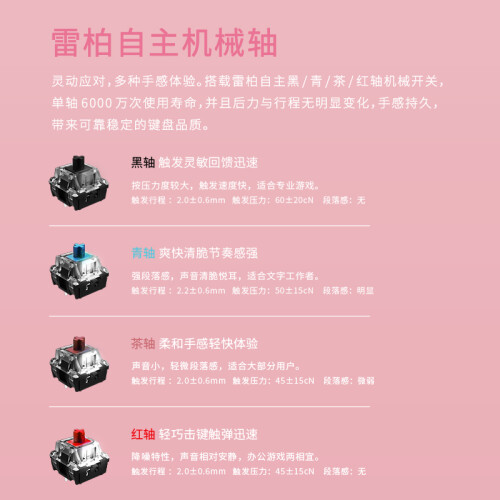 当前的位置: 首页 > 今日值得买 > 雷柏(Rapoo) V500PRO粉白双拼色多模版 三模机械键盘 无线蓝牙键盘 有线键盘 104键 同时连5台设备 茶轴