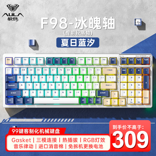 当前的位置: 首页 > 今日值得买 > 狼蛛(AULA)F98机械键盘无线2.4G/有线/蓝牙三模 客制化RGB热插拔 98配列游戏电竞键盘 夏日蓝汐【冰魄轴】