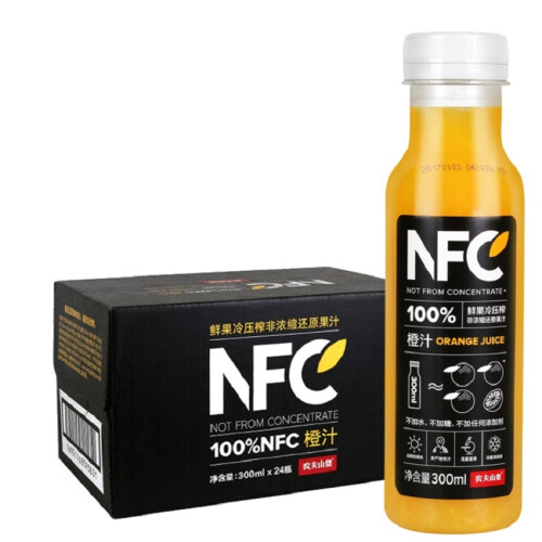 当前的位置: 首页 > 今日值得买 > 农夫山泉 NFC果汁100%鲜果冷压榨饮料年货送礼佳品 橙汁鲜果300ml*24瓶