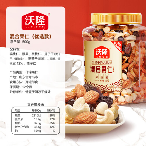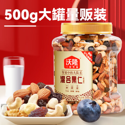 当前的位置: 首页 > 今日值得买 > 沃隆混合坚果500g罐装每日坚果果干休闲零食腰果核桃仁榛子仁蓝莓干