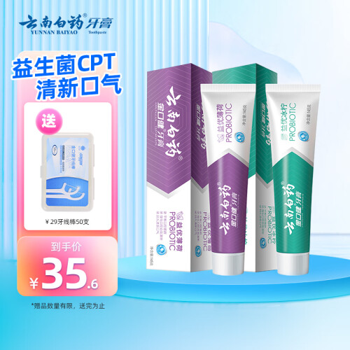 当前的位置: 首页 > 今日值得买 > 云南白药牙膏益生菌清新口气牙膏家庭装 【尝鲜装】2支牙膏(共290g)