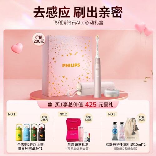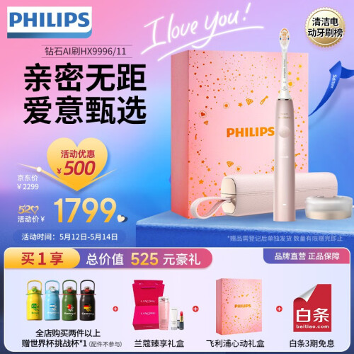 当前的位置: 首页 > 今日值得买 > 飞利浦(PHILIPS)【520情人节礼物】 电动牙刷成人情侣款 礼物送男友/女友 钻石系列 钻石升级钻石AI刷 -HX9996/13【樱花粉】