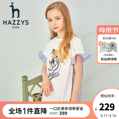 当前的位置: 首页 > 今日值得买 > 哈吉斯(HAZZYS)品牌童装女童裙式上衣夏新款女童儿童圆领花边袖连衣裙中大童时尚 本白 105