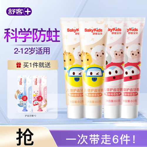当前的位置: 首页 > 今日值得买 > 舒客奥飞联名款儿童成长护齿牙膏含氟成长护齿牙刷防蛀固齿 4支(鲜橙香型*2+草莓香型*2)