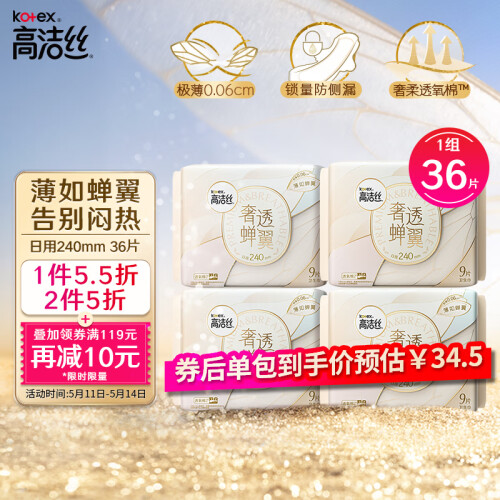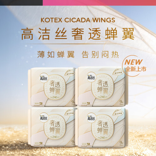 当前的位置: 首页 > 今日值得买 > 高洁丝(Kotex)奢透蝉翼极薄棉柔卫生巾240mm 9片*4包