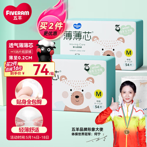 当前的位置: 首页 > 今日值得买 > 五羊(FIVERAMS)薄薄芯纸尿裤M108片(6-11kg)婴儿尿不湿超薄透气瞬吸干爽