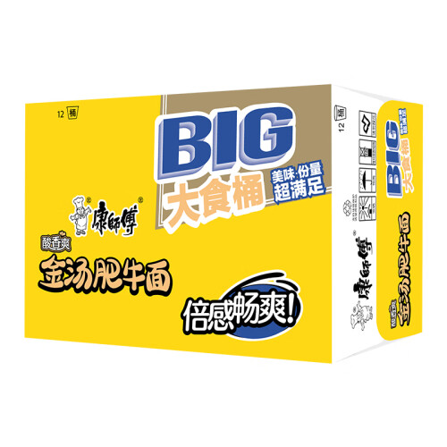 当前的位置: 首页 > 今日值得买 > 康师傅方便面 整箱装 大食桶酸香爽金汤肥牛面 泡面桶装速食 112g*12桶