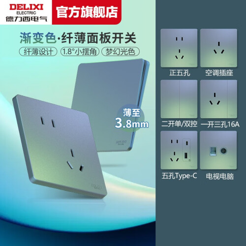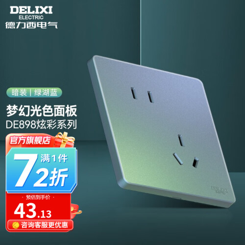 当前的位置: 首页 > 今日值得买 > 德力西(DELIXI)开关插座5孔绿湖蓝DE898面板一开单控暗装插座超薄面板86型通用 斜五孔插座