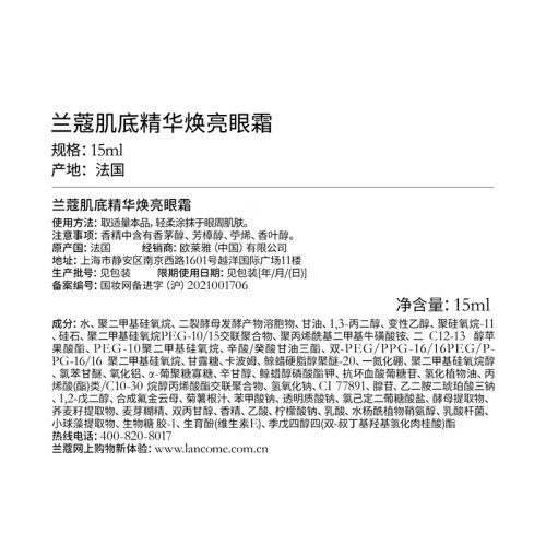 当前的位置: 首页 > 今日值得买 > 兰蔻(LANCOME) 发光眼霜15ml小黑瓶肌底精华焕亮眼霜 女友 礼物 15ml