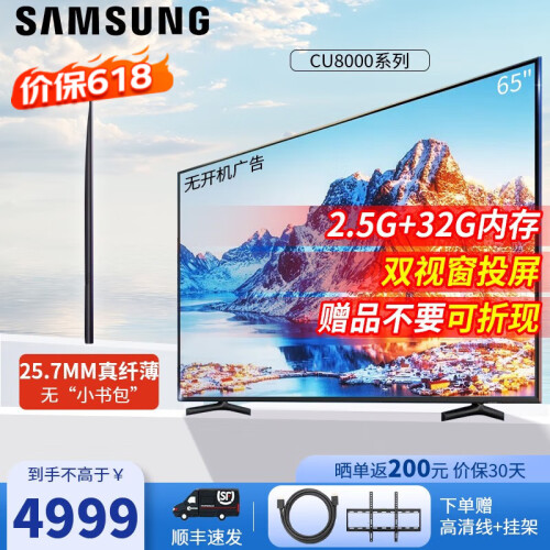 当前的位置: 首页 > 今日值得买 > 三星(SAMSUNG)65英寸 4K超高清HDR超薄全面屏 AI智能补帧 平板液晶电视 UA65CU8000JXXZ