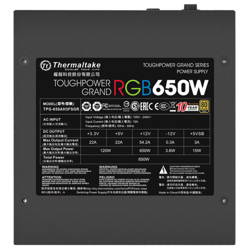 当前的位置: 首页 > 今日值得买 > Tt(Thermaltake)额定650W TPG RGB 650W 电脑电源(联动主板/神光同步/80PLUS金牌/全模组/全日系电容)