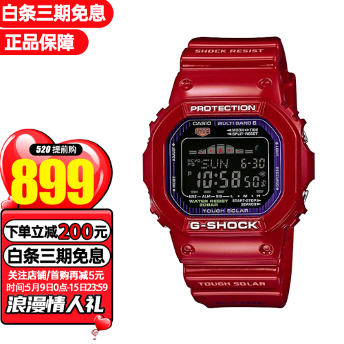当前的位置: 首页 > 今日值得买 > 卡西欧(Casio)手表G-SHOCK太阳能电波小方块潮汐月相运动男表 小红表GWX-5600C-4