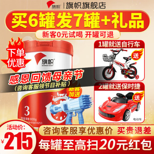 当前的位置: 首页 > 今日值得买 > 旗帜红罐奶粉3段君乐宝红旗12-36个月幼儿配方800g罐装 800g1罐