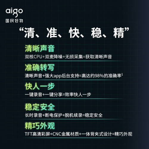 当前的位置: 首页 > 今日值得买 > 爱国者aigo AI智能录音笔SR50 专业高清降噪 会议录音转文字 录音器 同声传译16G黑色