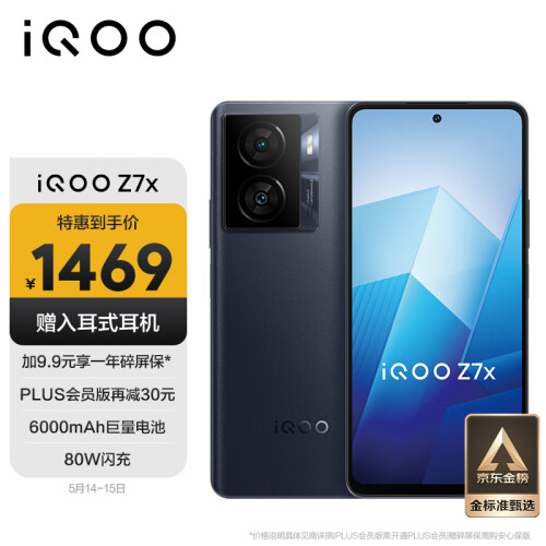 当前的位置: 首页 > 今日值得买 > vivo iQOO Z7x 8GB+256GB 深空黑 80W闪充 6000mAh巨量电池 骁龙695 120Hz竞速屏 5G手机iqooz7x