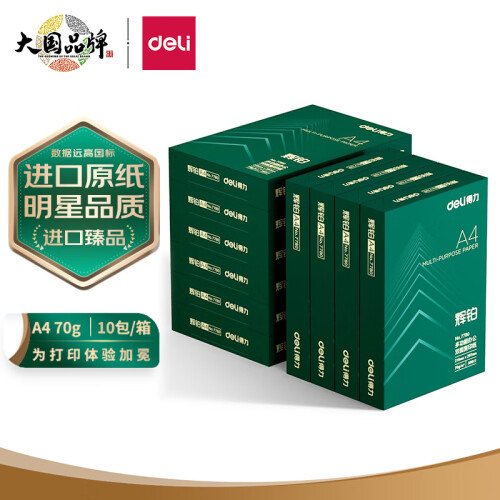当前的位置: 首页 > 今日值得买 > 得力(deli)辉铂A4打印纸 70g克500张*10包一箱 进口原纸复印纸 双面草稿纸 整箱5000张 7785