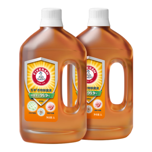 当前的位置: 首页 > 今日值得买 > 五羊(FIVERAMS) 衣物除菌液1L×2瓶装 抑菌率99.9% 衣物地板玩具用品多用途消毒液