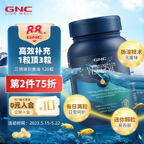 当前的位置: 首页 > 今日值得买 > GNC健安喜 三倍迷你鱼油软胶囊1500mg 高含量欧米茄-3 120粒/瓶 迷你颗粒 海外原装进口