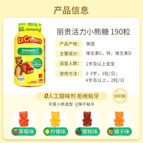 当前的位置: 首页 > 今日值得买 > 丽贵小熊糖儿童复合维生素软糖叶黄素VA+VD+VE复合美国原装进口190粒//瓶 2岁+ 儿童多维190+儿童VC补锌190