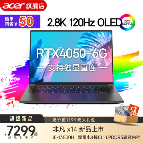 宏碁笔记本电脑非凡X14/非凡Pro2023款S5 新13代酷睿标压超轻薄14英寸触控屏可选 新13代酷睿标压i5-13500H丨4050-6G 16G LPDDR5高频内存丨1000G【官配版】