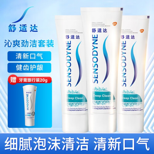 当前的位置: 首页 > 今日值得买 > 舒适达牙膏套装 多效护理抗敏感健齿护龈呵护牙龈美白牙齿去烟渍牙黄渍 沁爽劲洁套装(共320g)