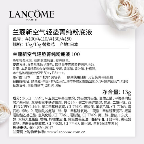 当前的位置: 首页 > 今日值得买 > 兰蔻菁纯气垫#100粉白皮 持妆服帖养肤 化妆品生日520情人节礼物女