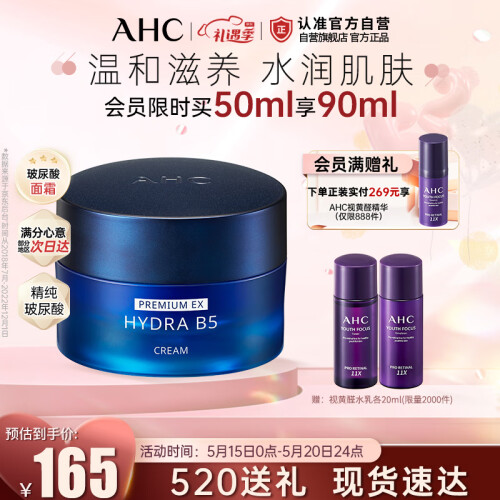 当前的位置: 首页 > 今日值得买 > AHC 经典版臻致B5玻尿酸面霜 50ml护肤品 新老包装随机发 温和滋润