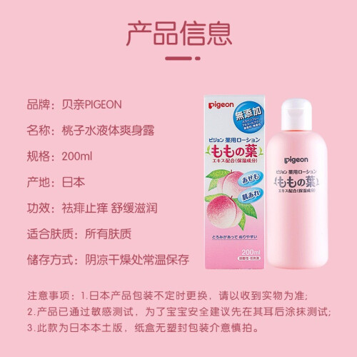 当前的位置: 首页 > 今日值得买 > 贝亲(Pigeon)日本原装进口婴儿桃叶精华爽身露200ml 祛痱止痒 舒缓保湿