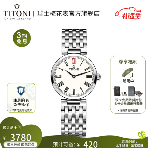 当前的位置: 首页 > 今日值得买 > 梅花(Titoni) Titoni瑞士梅花手表女士石英表时尚原装进口腕表纤薄系列情人节 TQ 42718 S-608