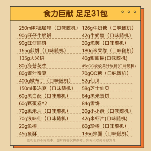 当前的位置: 首页 > 今日值得买 > 旺旺 巨型肩扛大礼包 网红爆款 出游必备零食 懒人零食礼包 2.8kg