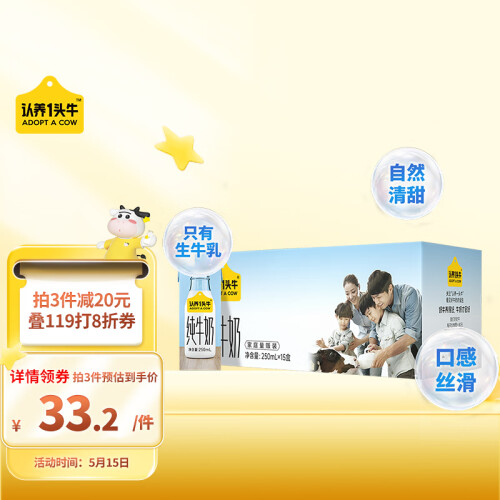 当前的位置: 首页 > 今日值得买 > 认养一头牛全脂纯牛奶250ml*15盒 加量装学生成人营养早餐纯奶整箱