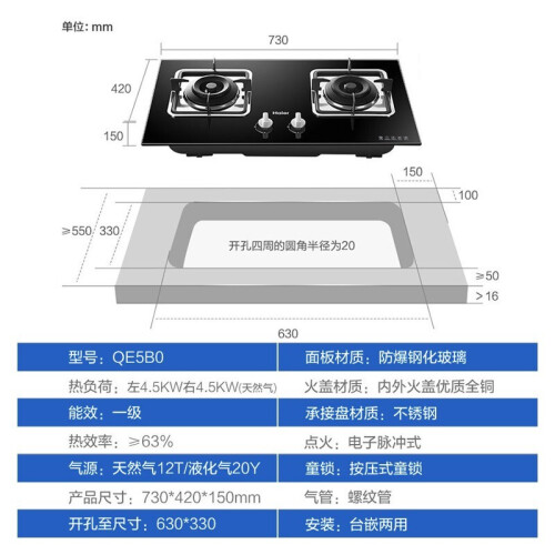 当前的位置: 首页 > 今日值得买 > 海尔(Haier)燃气灶 双一级能效 聚能直喷火 猛火灶 台嵌两用 灶台 然气灶双灶头 【QE5B0液化气灶】4.0KW