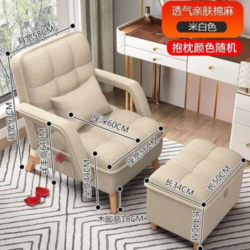 当前的位置: 首页 > 今日值得买 > 楚屹懒人沙发卧室靠背椅子单人网红可调节小沙发阳台沙发椅折叠椅 米白色沙发+脚踏【亲肤棉麻】