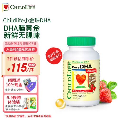 当前的位置: 首页 > 今日值得买 > ChildLife 爆珠小金珠dha 儿童鱼油胶囊 守护童年22载时光 挪威深海鳕鱼 90粒/单瓶 小金珠DHA