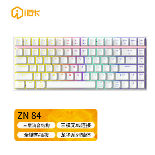 当前的位置: 首页 > 今日值得买 > 艾石头 ZN84 三模无线连接RGB背光全键热插拔机械键盘游戏键盘 白粉拼色 茶轴