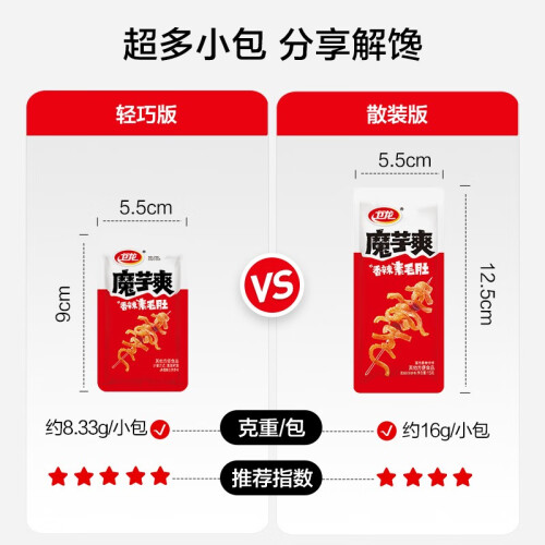 当前的位置: 首页 > 今日值得买 > 卫龙 辣条魔芋爽轻巧香辣素毛肚休闲零食大礼包送女友生日礼物 450g|经典香辣|约50包