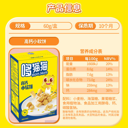 当前的位置: 首页 > 今日值得买 > 哆猫猫 儿童零食宝宝零食高钙小软饼60g儿童饼干不添加防腐剂