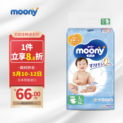 当前的位置: 首页 > 今日值得买 > 尤妮佳(MOONY)纸尿裤日本进口畅透系列大号尿不湿 L54片(9-14kg)男女通用