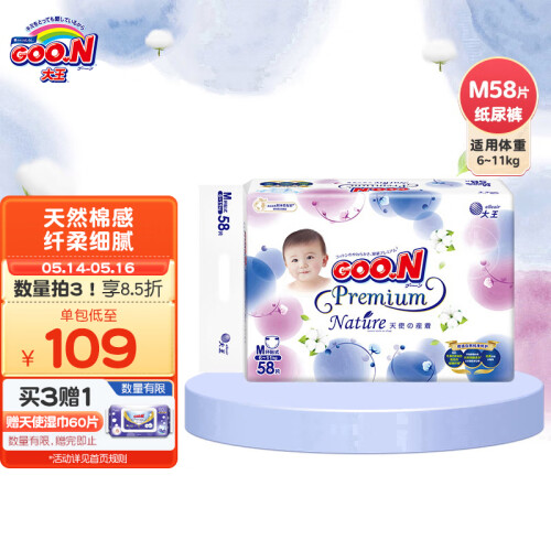 当前的位置: 首页 > 今日值得买 > 大王GOO.N 天使自然之恩纸尿裤 M58片(6-11kg)尿不湿婴儿 纤柔至薄