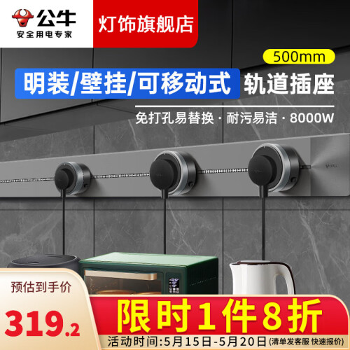 当前的位置: 首页 > 今日值得买 > 公牛(BULL)可移动明装轨道插座 多功能厨房专用电力滑轨壁挂式插线板右出线 明装/右线/灰/长500mm+3适配器