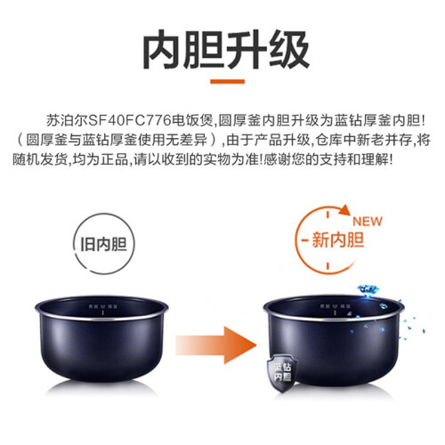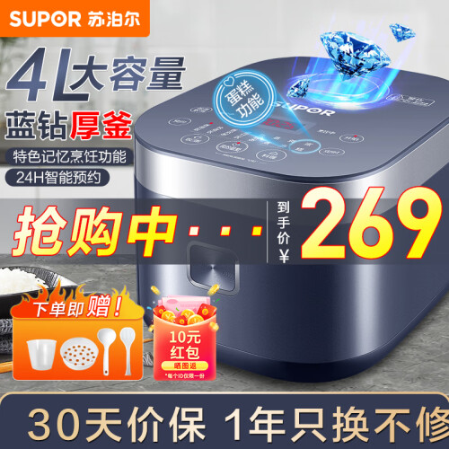 当前的位置: 首页 > 今日值得买 > 苏泊尔(SUPOR)电饭煲电饭锅4L蓝钻厚釜内胆2-6人使用可添加记忆功能蛋糕功能8大菜单家用智能电饭煲40FC776 4L蓝钻厚釜 记忆烹饪 戚风蛋糕