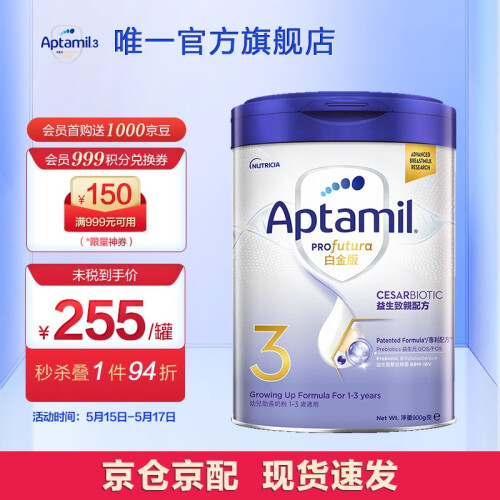 当前的位置: 首页 > 今日值得买 > 爱他美(Aptamil)【海外官方店】爱他美Aptamil白金致亲版 婴幼儿配方奶粉900g 3段(1-3岁)