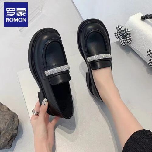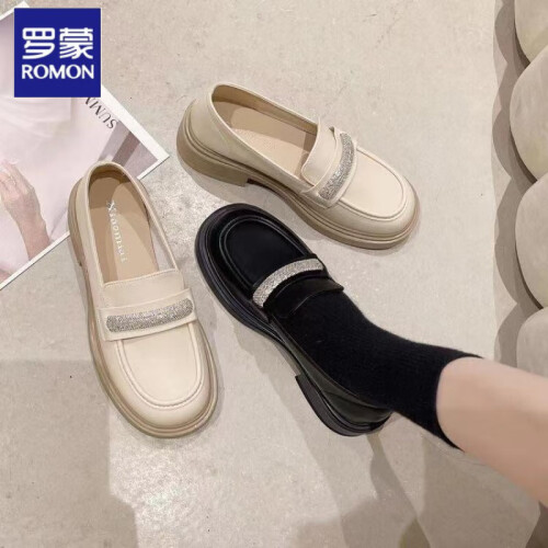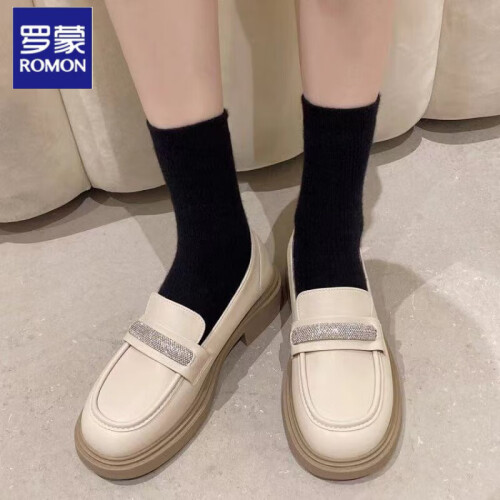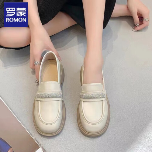 当前的位置: 首页 > 今日值得买 > 罗蒙2023春季新款纤软皮乐福鞋女圆头粗跟带满水钻新款 米色 35