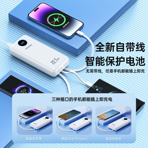 当前的位置: 首页 > 今日值得买 > 诺希(NOHON)充电宝自带线20000毫安时支持苹果PD20W华为22.5w超级快充移动电源数显 自带三线22.5快充【20000mAh】白色